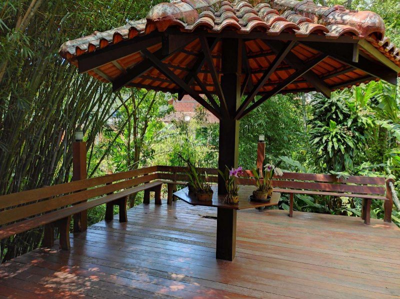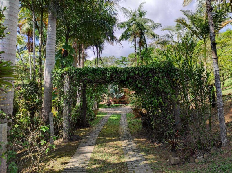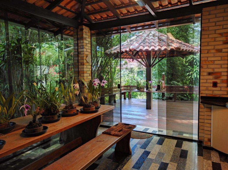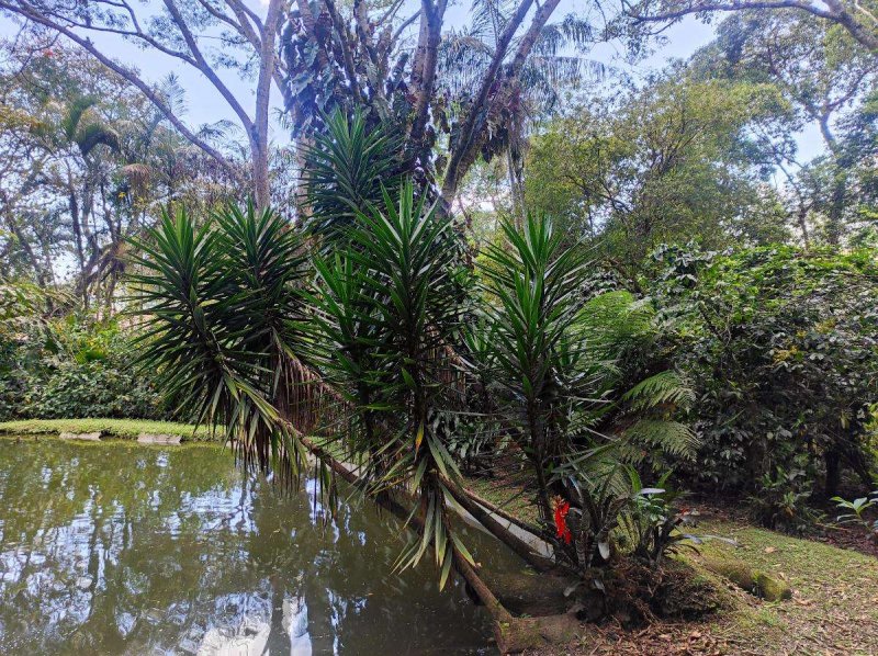 Antúrios (150 pés), Xaxins (41), Cana (60 pés), Bananeiras (30 pés), Café (25 pés)